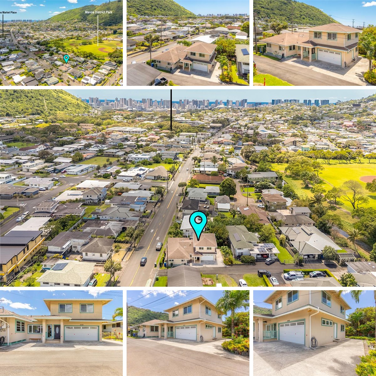 Experience this versatile multi-home property in the heart of Manoa! Perfectly designed for multi-generational living or as an outstanding rental income opportunity, this gem boasts 2,615 square feet of spacious living. Featuring a total of 6 bedrooms and 4 bathrooms, the layout allows for separation into two distinct living areas: a convenient single-level 3-bedroom, 2-bath unit and a charming 2-story 3-bedroom, 2-bath unit, complete with a 2-car garage. Originally constructed in 1947, this residence underwent a significant expansion in 2012, blending classic charm with modern conveniences. Enjoy ample parking for 5-6 vehicles plus convenient street parking. Step outside to lush, green surroundings filled with historic homes, and take advantage of the unbeatable location—just a short walk to Manoa Marketplace (with its popular local eateries, and boutique shops), Manoa Valley District Park, and vibrant neighborhood spots. Surrounded by rainforest scenery and the peaceful vibe of Manoa, this versatile gem delivers the perfect blend of privacy, convenience, and island lifestyle. A true standout for families or savvy investors!